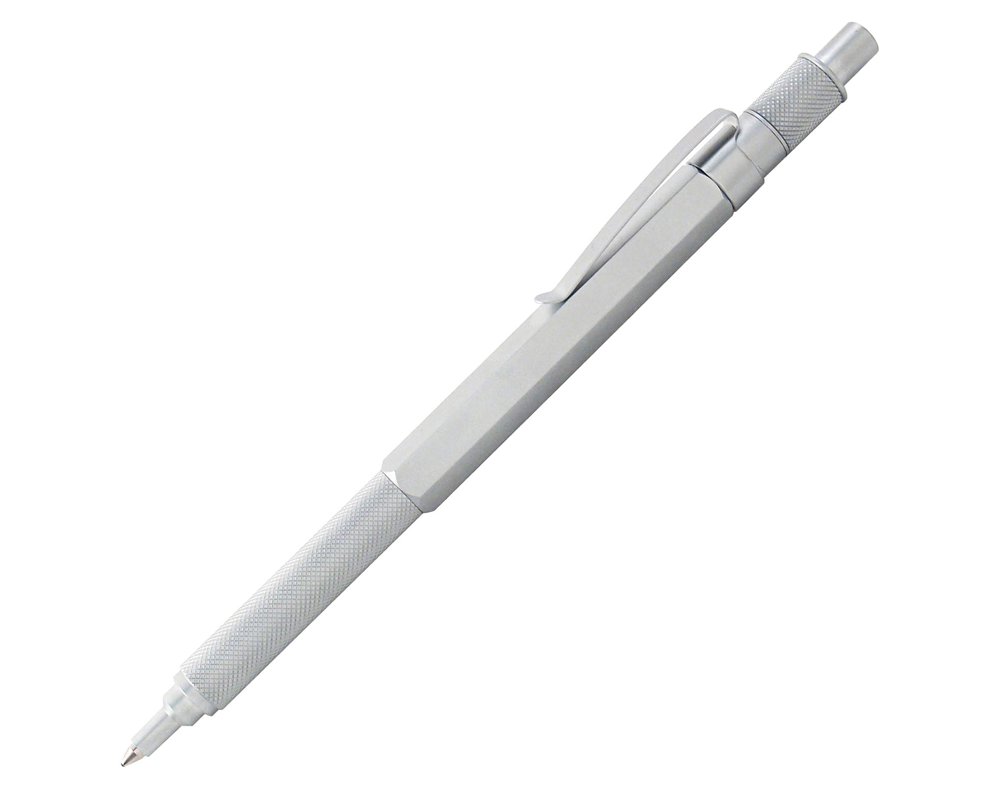 The Hex-o-matic is back-in-stocko! These Retro51s are made with precision to maximize your efficiency. The textured grip section and hexagonal barrel are constructed from brass giving these writing instruments a solid yet balanced feel in hand. This click-top ballpoint comes in two colors: matte black and satin silver. Each one is packaged in a unique hexagon shaped box.