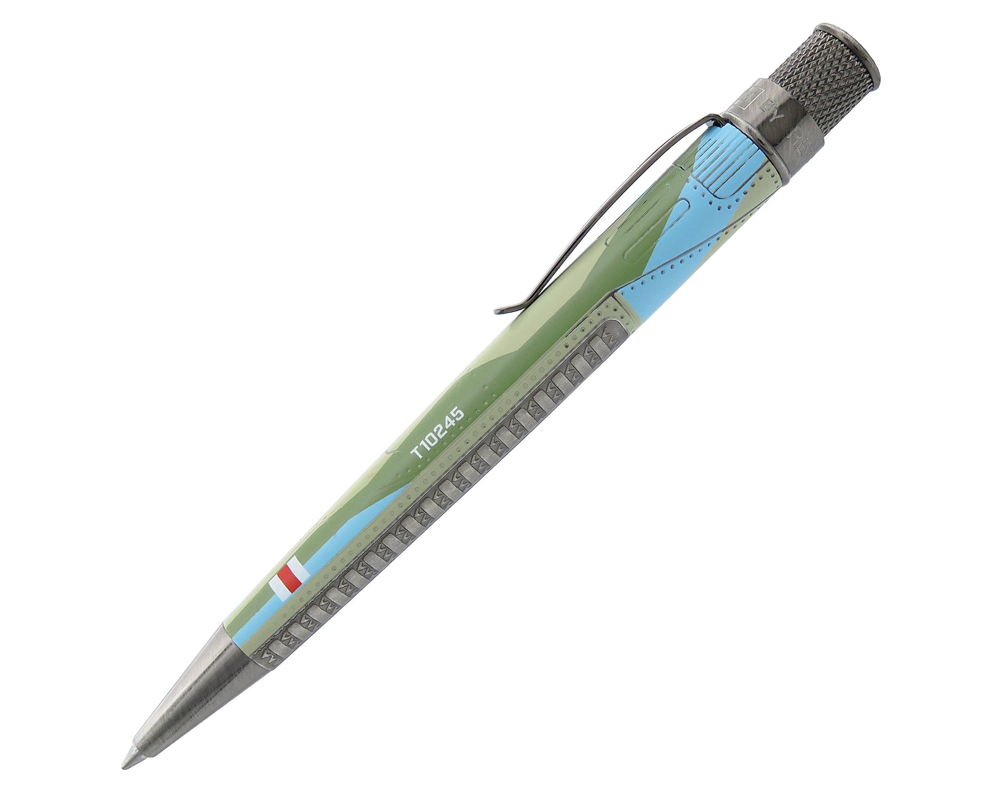 Finished in a striking camouflage pattern of khaki, light blue, and olive green, each pen captures the distinctive look of the tank that earned its place on battlefields from France to North Africa. They are complete with antique silver accents, numbered top ring and packaged in a commemorative tube.