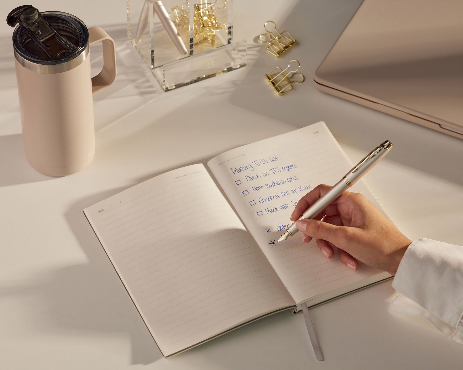 Designed with the modern professional in mind, the functional, smart, and polished Parker IM fountain pen is sure to stand out in any workplace. Making no compromises, Parker IM Monochrome pens feature a full metal body that looks and feels luxurious in your hands. Meanwhile, the monochromatic design, from the champagne trims to the champagne nib, portrays unmatched elegance. With over a century of in-house craftsmanship and expertise, this Parker pen features exclusive metal parts adorned with PVD coating that offers superior wear and corrosion resistance—as well as a distinctive look. The modern fountain pen uses Quink ink cartridges or converts to ink bottle filling, for an extra level of sophistication in your writing. And with an elegant Parker gift box, the Parker IM Monochrome pen makes for memorable gifting