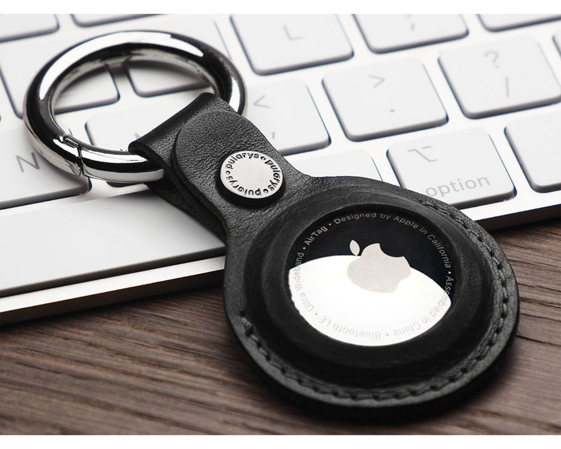 Key ring made of specially selected, vegetable-tanned Nomad leather in black, designed to carry an AirTag for effortless tracking and peace of mind. Crafted with meticulous attention to detail, this key ring offers both functionality and style, ensuring your belongings stay secure while adding a touch of elegance to your everyday carry.