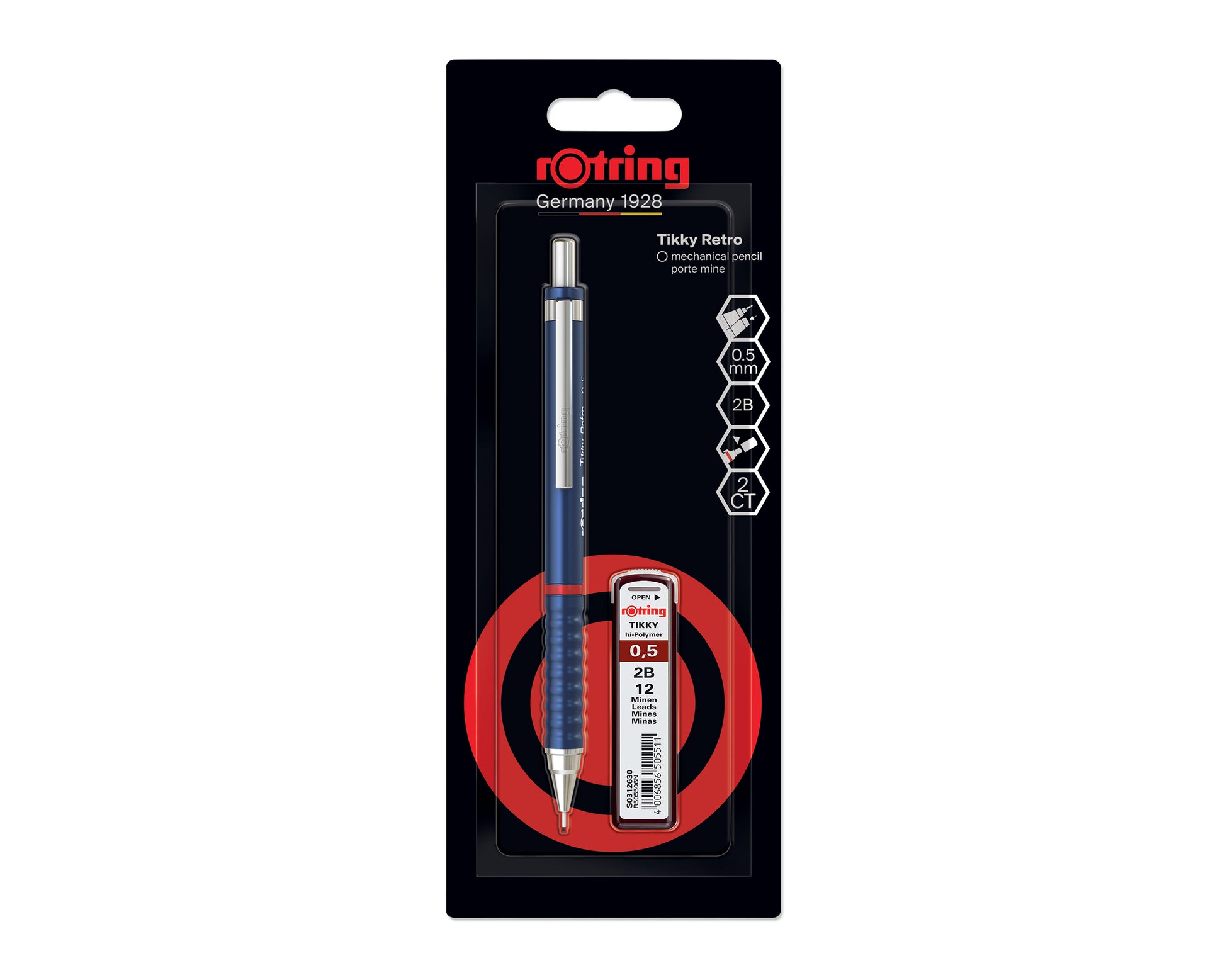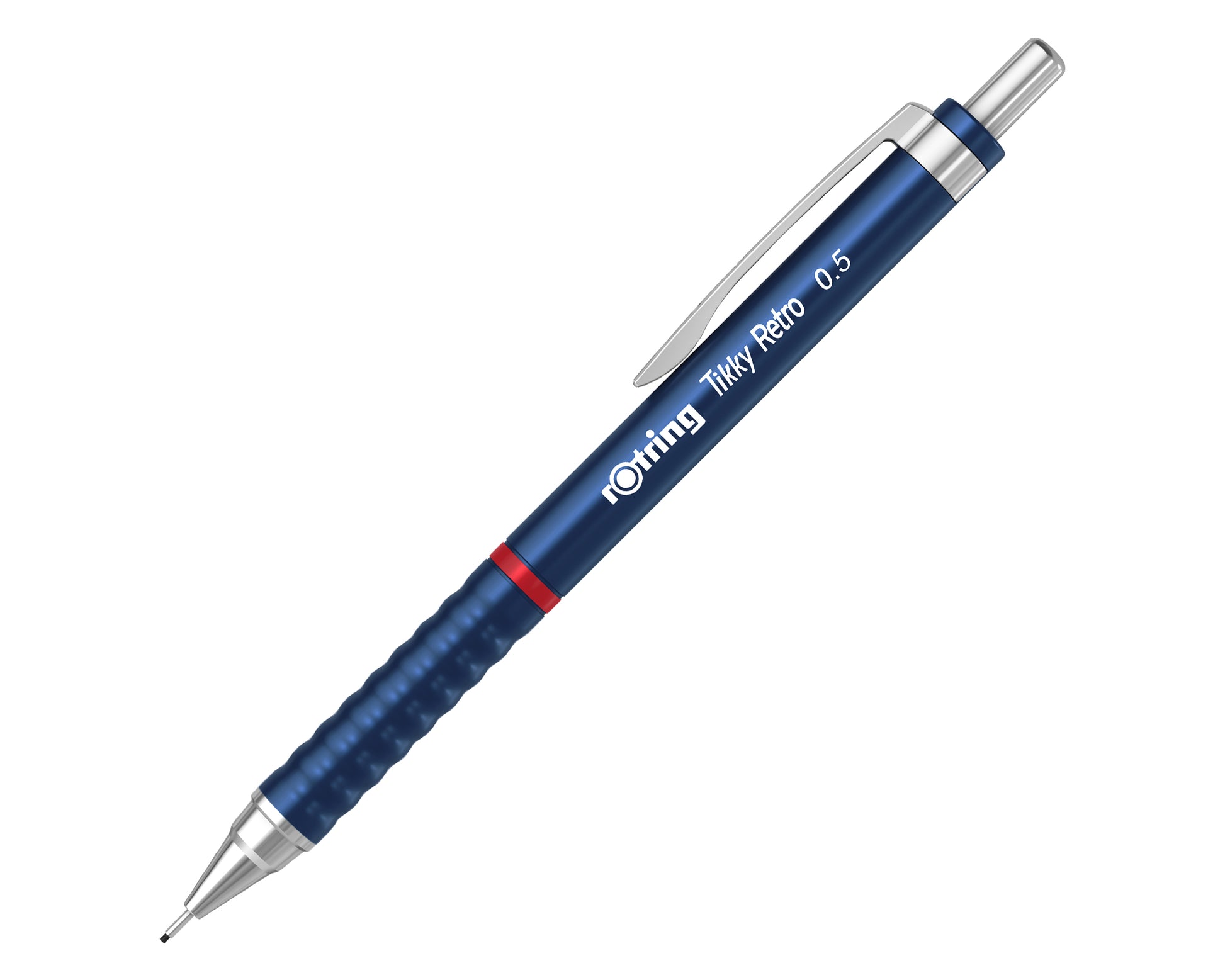 The rOtring Tikky mechanical pencil is a sleek, efficient pencil for many uses, featuring a triangular barrel that won't roll away and provides a comfortable, relaxed hold. This mechanical pencil has a rubberized grip and is lightweight, allowing for long writing sessions without causing fatigue.