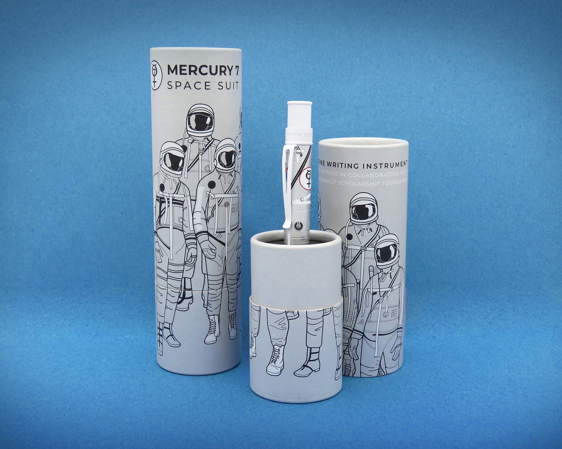 The illustration of the Mercury 7 on the packaging tube is reminiscent of the iconic photo of the astronauts in their suits and is printed against a metallic silver to complete the beauty of this special writing instrument. Continue to reach for the stars with the Mercury 7 Astronaut pen and honor the brave men and women who made such achievements possible.