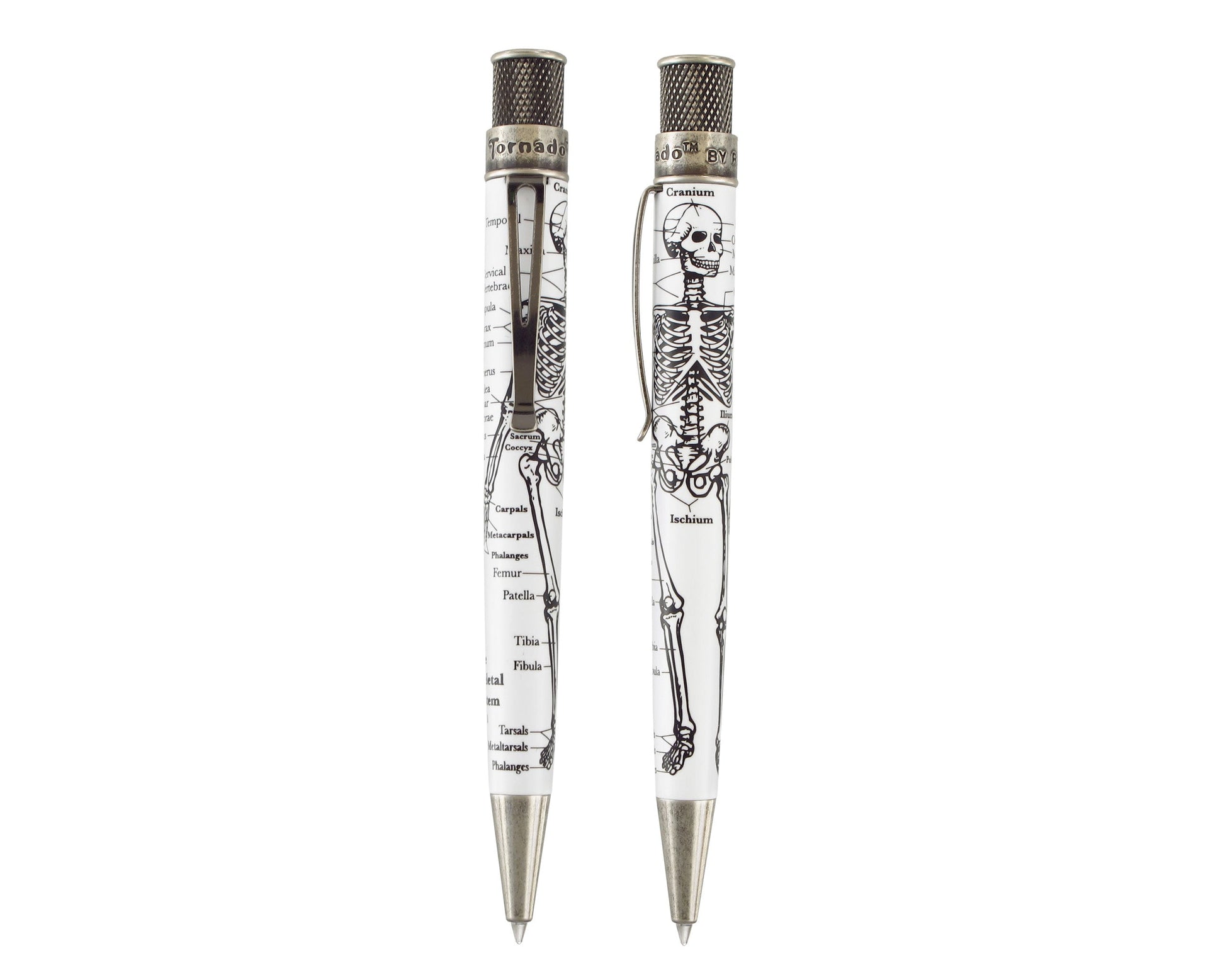 The ‘Dr. Gray’ rollerball will help with your anatomy lessons, as it ties to Dr. Henry Gray, as well as his book on human anatomy. Each pen features in white printed with a black Dr. Gray skeleton on an acid-etched lacquer finish barrel that is highlighted with antique silver accents.