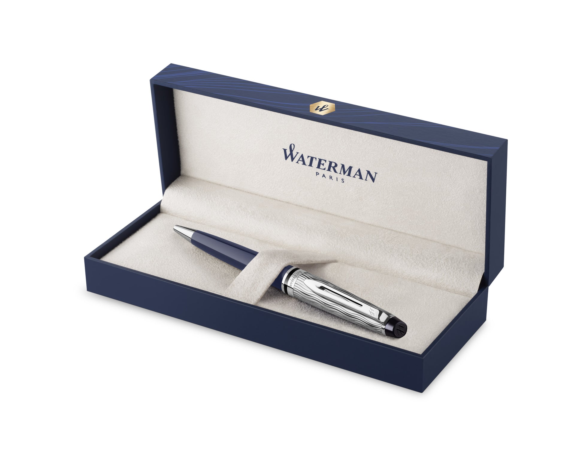 A symbol of ambition and success, the L’essence du bleu Expert ballpoint pen is finished in a vibrant, deep blue lacquer with Waterman’s signature wave pattern chiseled into the metal cap. Each luxury pen is crafted in France and presented in a premium Waterman gift box.